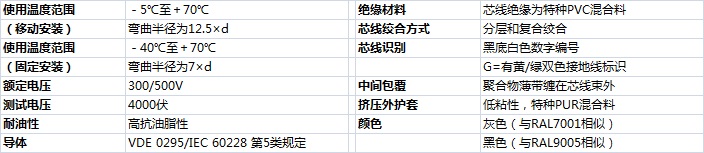 加強型耐油和冷卻液PUR護套數字芯線柔性控製電纜