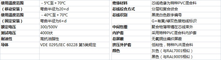加強型耐油和冷卻液PUR護套數字芯線屏蔽柔性控製電纜(內護型)