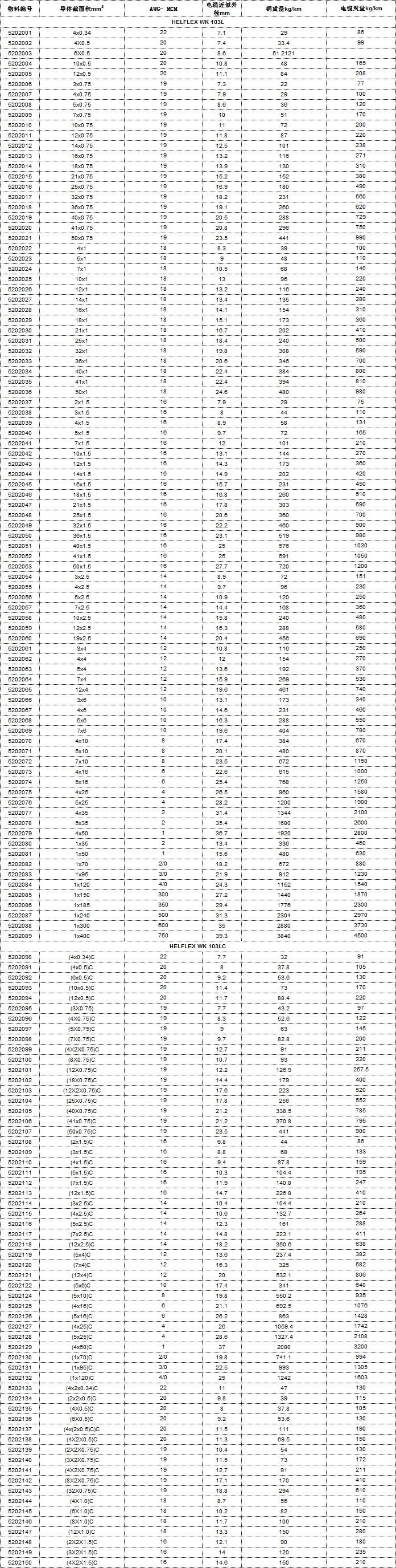 - HELFLEX WK 103L/103LC技術參數