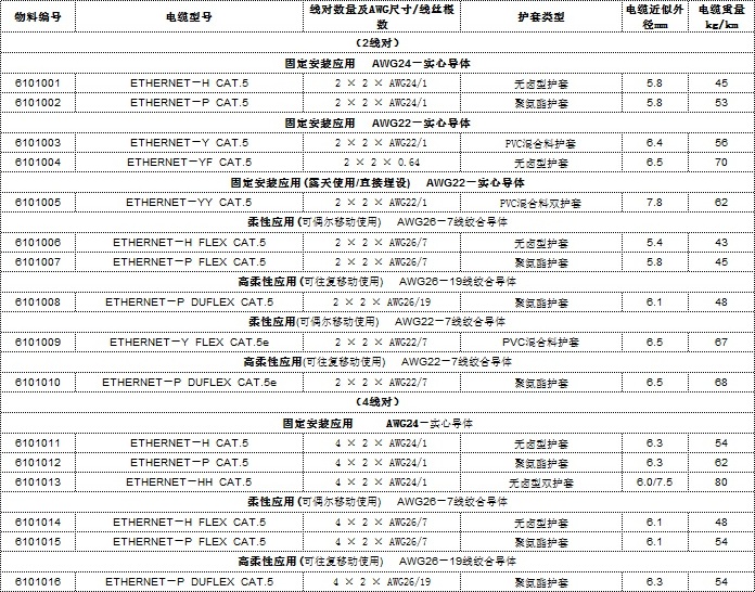 - ETHERNET CAT.5/CAT.5E/FLEX CAT.5/FLEX CAT.5E技術參數